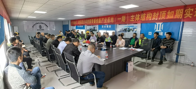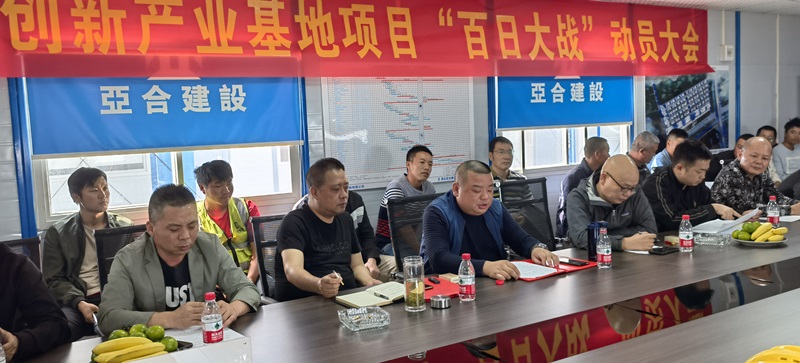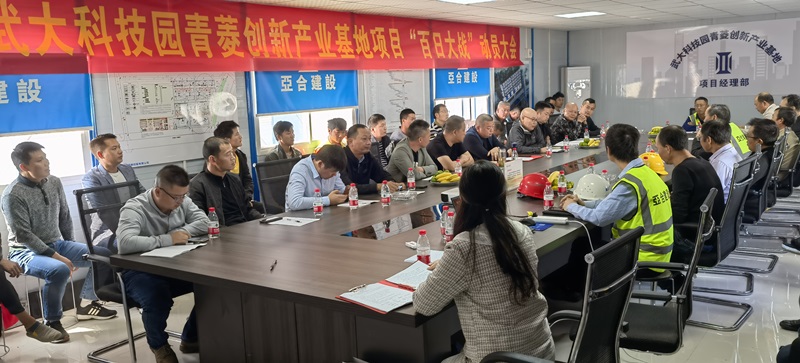 2021年10月12日上午11時(shí),湖北亞合建設(shè)在武大產(chǎn)業(yè)園青菱創(chuàng)新產(chǎn)業(yè)基地項(xiàng)目部會(huì)議室組織召開“百日大戰(zhàn)”動(dòng)員大會(huì)。該會(huì)議由亞合建設(shè)行政部召開主持,并邀請甲方楚朗公司領(lǐng)導(dǎo)、亞合建設(shè)董事長、總經(jīng)理、工程副總、商務(wù)副總、安環(huán)經(jīng)理、采購經(jīng)理、和平項(xiàng)目經(jīng)理、塔子湖項(xiàng)目經(jīng)理、大橋項(xiàng)目經(jīng)理、青菱項(xiàng)目一工區(qū)、二工區(qū)項(xiàng)目經(jīng)理、項(xiàng)目管理人員、勞務(wù)班組、施工員等五十余人參加,會(huì)議明確了100天的項(xiàng)目進(jìn)度計(jì)劃、施工方案及獎(jiǎng)懲措施,以保證武大科技園青菱創(chuàng)新產(chǎn)業(yè)基地(一期)主體結(jié)構(gòu)百日封頂目標(biāo)如期實(shí)現(xiàn)。
