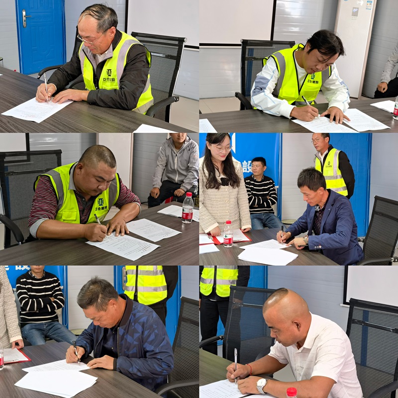 三、湖北亞合建設(shè)工程有限公司與武大產(chǎn)業(yè)園青菱創(chuàng)新產(chǎn)業(yè)基地項(xiàng)目部管理人員、勞務(wù)班組簽署責(zé)任狀。